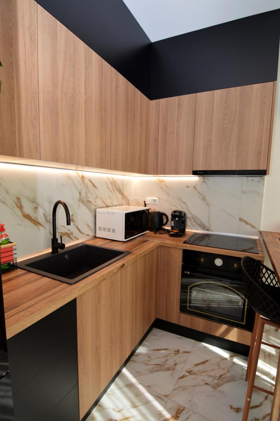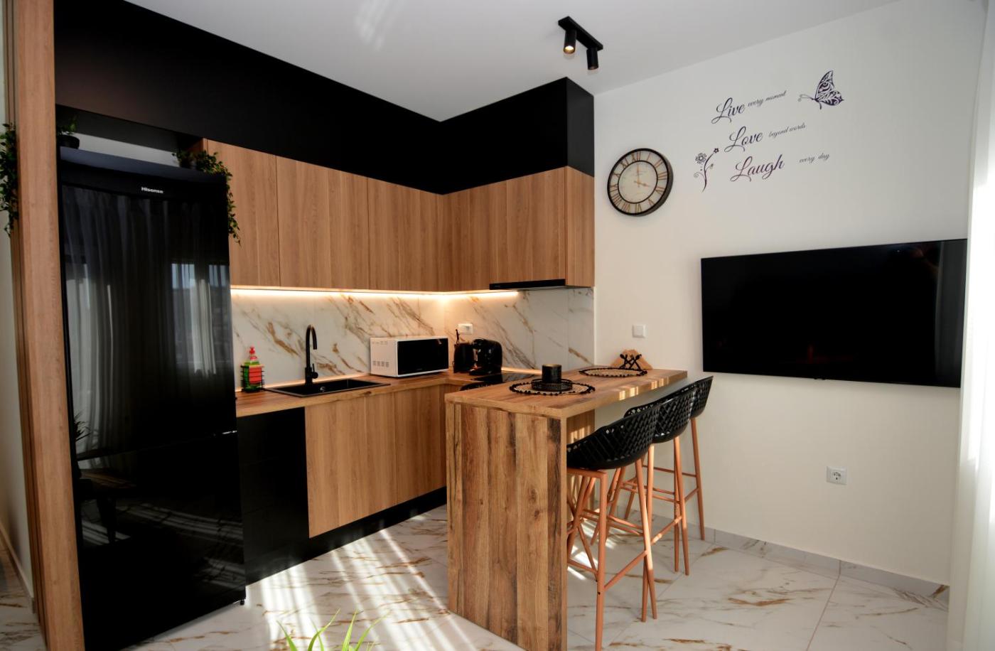 One-Bedroom Apartment. The fireplace is a top feature of this apartment. Boasting a private entrance, this air-conditioned apartment comes with 1 living room, 1 separate bedroom and 1 bathroom with a shower and a hairdryer. Guests can make meals in the kitchen that features a stovetop, a refrigerator, kitchenware and an oven. The apartment features a washing machine, soundproof walls, a tea and coffee maker, a flat-screen TV with streaming services, as well as garden views. The unit has 2 beds.